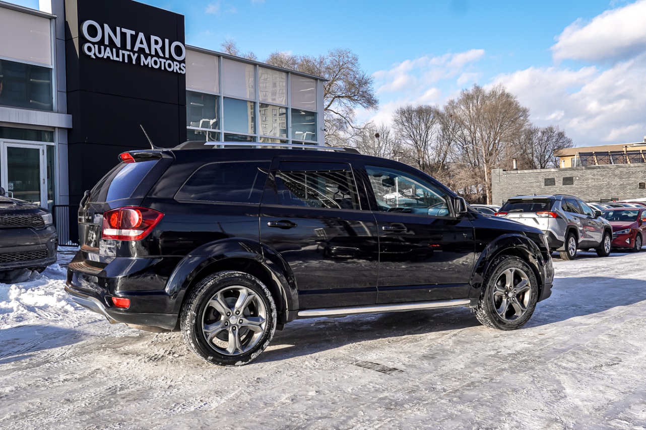 Come and see our beautiful 2017 Dodge Journey Crossroad, a spacious and versatile SUV designed for comfort and everyday practicality. Powered by a reliable V6 engine paired with an automatic transmission and front-wheel drive, it delivers smooth performance for city driving and highway cruising. The Crossroad trim offers desirable features such as leather-trimmed seating, heated front seats, touchscreen infotainment with Bluetooth connectivity, backup camera, dual-zone climate control, keyless entry, and flexible seating with ample cargo space. With its bold styling, comfortable interior, and family-friendly versatility, this Dodge Journey Crossroad is a great choice for drivers looking for space and value.