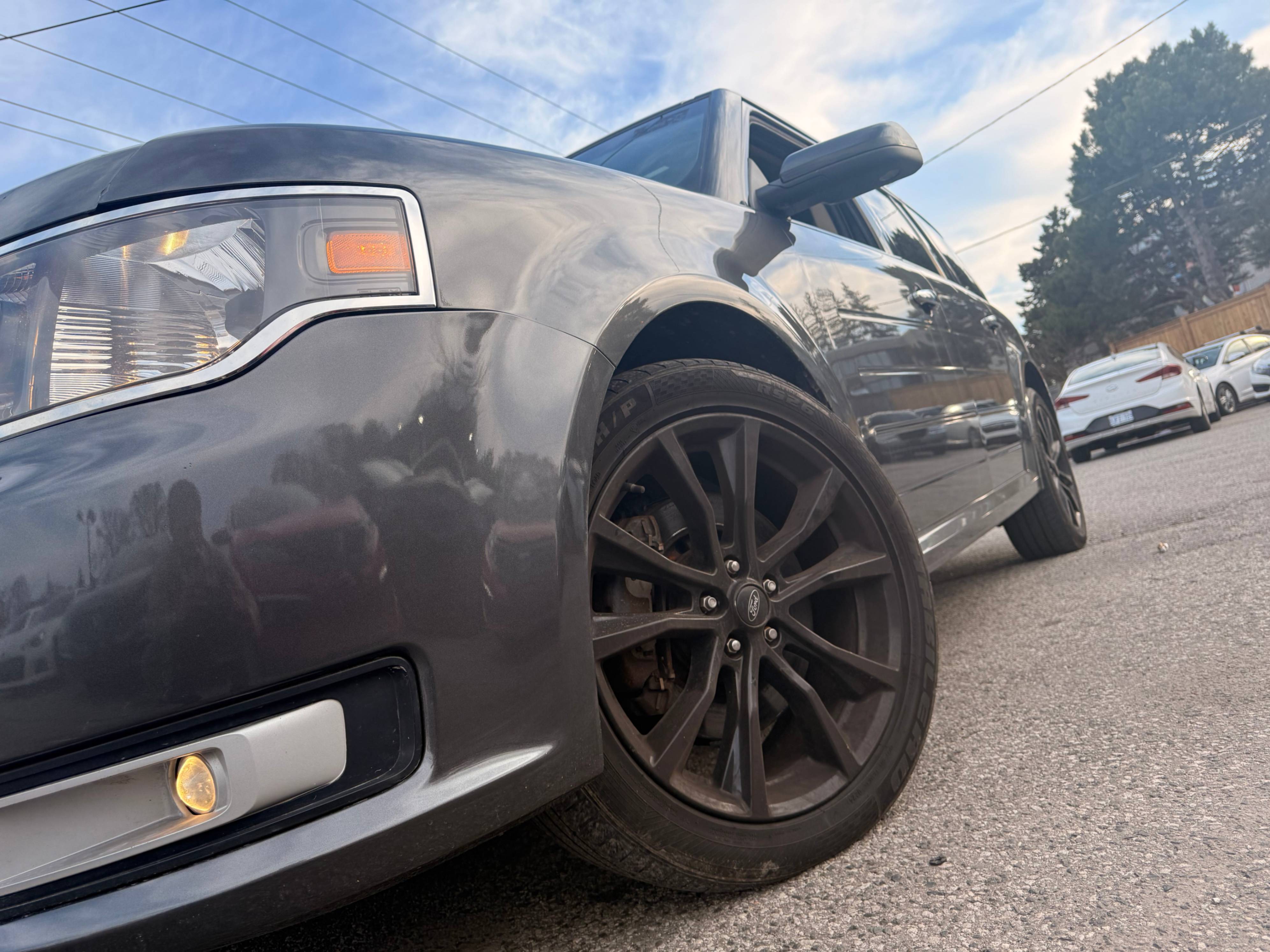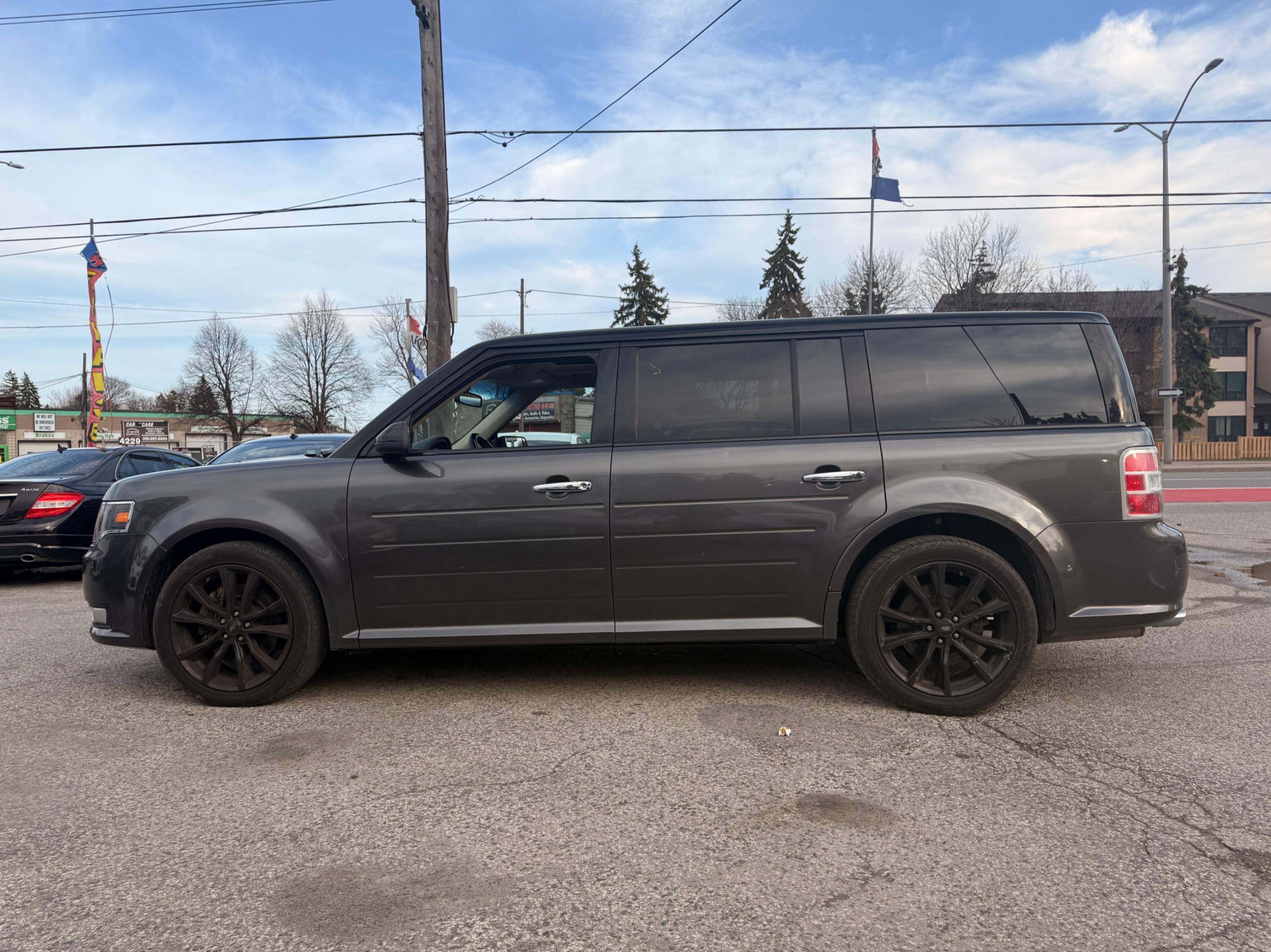 Come and see our beautiful 2018 Ford Flex SEL AWD, a spacious and uniquely styled three-row SUV that offers comfort, versatility, and confident all-weather performance. Powered by a smooth 3.5 L V6 engine paired with an automatic transmission and All-Wheel Drive, it delivers reliable performance and a comfortable ride for both daily driving and long trips. The SEL trim includes features like leather-trimmed heated front seats, power driver’s seat, panoramic sunroof, touchscreen infotainment with Apple CarPlay®/Android Auto™, Bluetooth connectivity, tri-zone climate control, keyless entry, and a backup camera — making it perfect for families, commuters, or road-trip adventures. With its roomy cabin, advanced technology, and distinct design, the Ford Flex SEL AWD stands out as a versatile and comfortable SUV option.