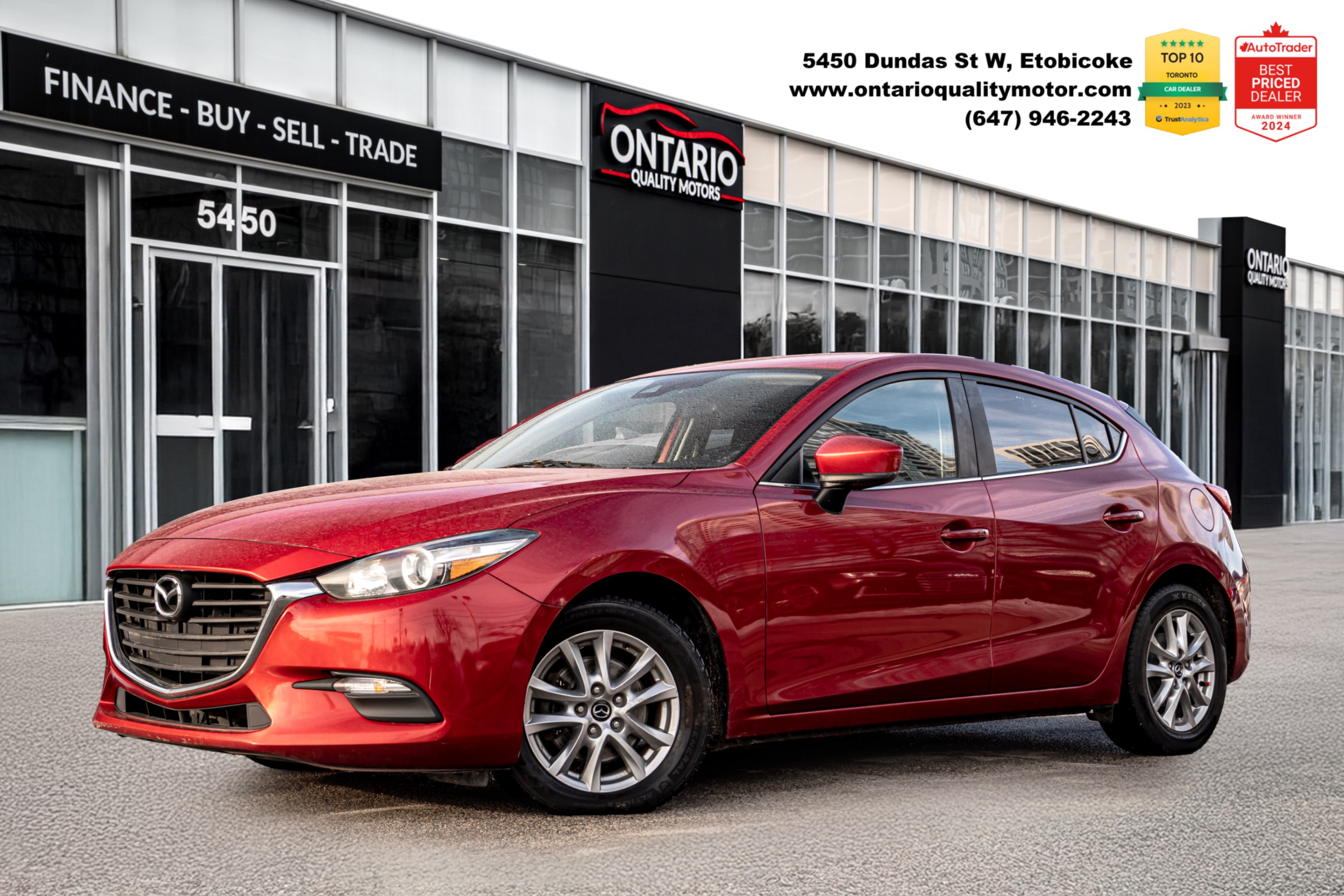 Come and see our beautiful 2018 Mazda3 Sport GS, a stylish and versatile compact hatchback that delivers responsive performance and everyday practicality. Powered by a 2.0 L SKYACTIV-G 4-cylinder engine paired with a smooth automatic transmission, it offers balanced performance, excellent fuel efficiency, and engaging handling. The GS trim includes features like heated front seats, touchscreen infotainment with Apple CarPlay®/Android Auto™, Bluetooth connectivity, a backup camera, keyless entry, and a comfortable, well-designed interior. With its sleek exterior styling, dependable reliability, and modern feature set, the Mazda3 Sport GS is a fantastic choice for drivers seeking versatility and value in a compact car. FINANCING OPTIONS AVAILABLE! TRADE-IN: PEACE OF MIND GUARANTEED: FREE vehicle history reports with every car. Extended warranty options tailored to your needs. WHY OUR PRICES ARE UNBEATABLE: As per OMVIC regulations, vehicle is not certified & not drivable. The certification is included with our client care package as advertised above for only $495 if requested. All our vehicles are in great shape and have been inspected by a licensed mechanic and are available to test drive. HST & Licensing fees are Extra GET IN TOUCH: HOURS OF OPERATION: Monday-Saturday: 10 AM to 8 PM Sunday: 12 PM to 5 PM Call us now at 647-946-2266 OR (647) 946-2321 to book your appointment! Our friendly sales team is excited to help you find your dream car at Ontario Quality Motors. 📍 Etobicoke Location: 5450 Dundas St W, Etobicoke, ON M9B 1B4 (647) 346-5333 📍Scarborough Location: 4226 KINGSTON ROAD, SCARBOROUGH ON M1E2M6