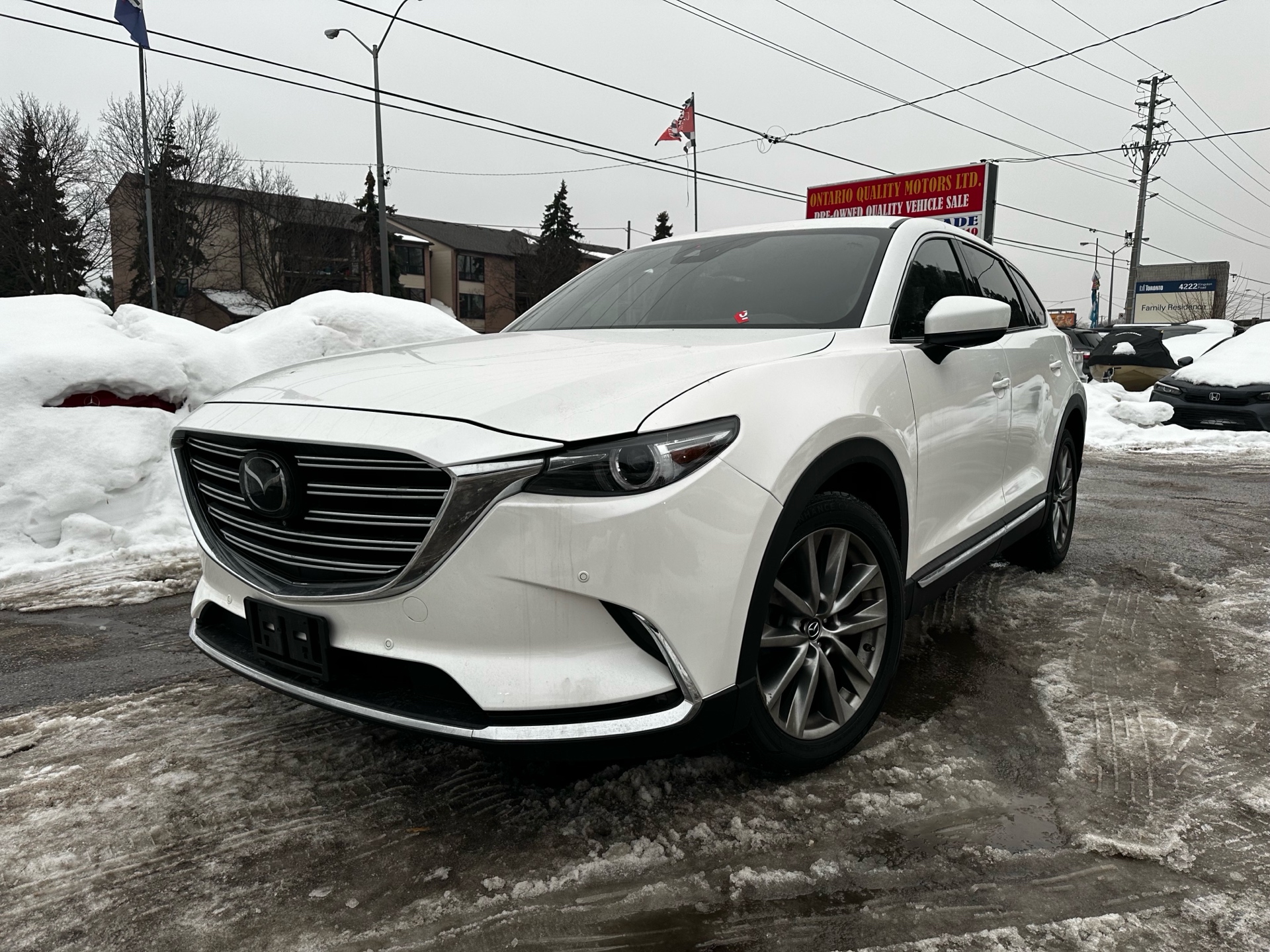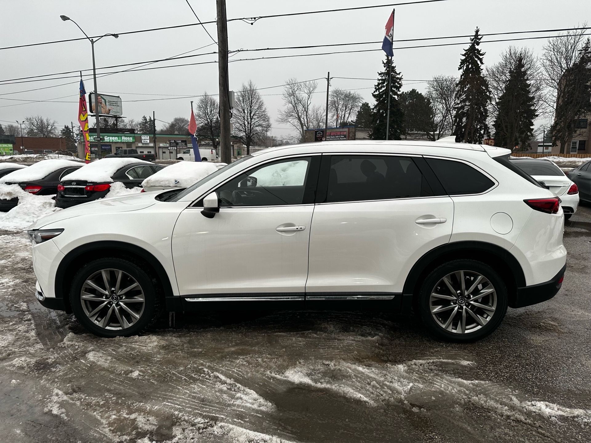 Come and see our beautiful 2019 Mazda CX-9 Signature AWD, a premium three-row SUV that blends luxury, performance, and advanced technology. Powered by a 2.5 L turbocharged 4-cylinder engine paired with a smooth automatic transmission and all-wheel drive, it delivers confident performance and refined road manners in all conditions. The Signature trim offers top-tier features including Nappa leather seating, heated and ventilated front seats, heated second-row seats, a panoramic sunroof, premium Bose® audio, navigation, a power liftgate, and a surround-view camera system. With its elegant styling, spacious and upscale interior, and exceptional comfort, this CX-9 Signature AWD is an outstanding choice for families and drivers who want luxury and versatility.